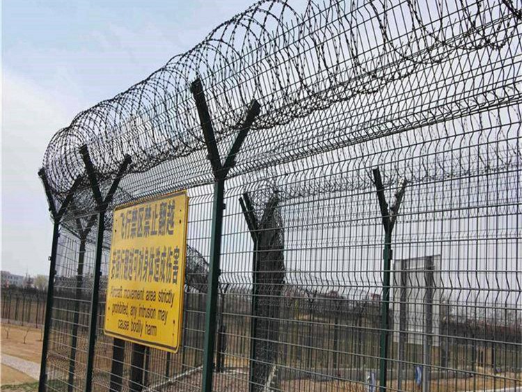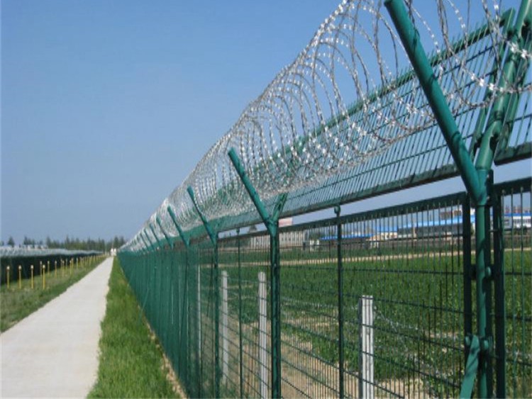 機場防御圍界網不僅是一種簡單的防護網和隔離網,它還可以設置在公路、橋梁等多個地方,能夠起到維護交通秩序,防止交通意外的發生和美化城市樣貌的功能。在機場護欄網頂部安裝刀片刺籠,很好的增加了安全防護性能,由V形支柱、焊接網和緊固件組成,不易變形。
