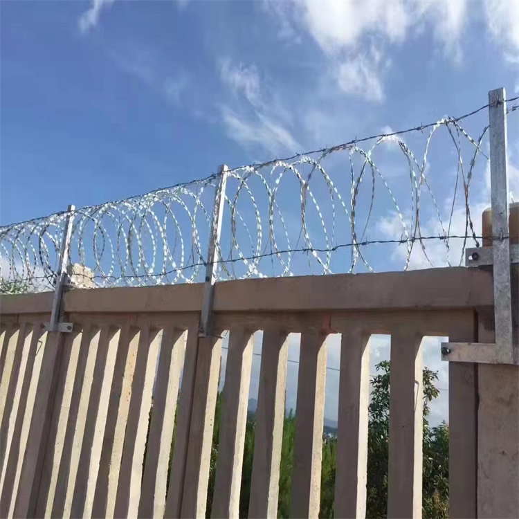 刀片刺網由熱鍍鋅鋼板或不銹鋼薄板沖壓出尖銳的刀片狀,高張力鍍鋅鋼絲或者不銹鋼絲做芯線組合而成的阻絕器材。由于刺網造形 不易觸摸,因而能達到 的防護隔離效果。產品的主要材質有鍍鋅板和不銹鋼板。平時我們常見的,和常使用的就是鍍鋅和不銹鋼當然顏色會比較單一就是呈現銀色,這一款有的時候跟我們的環境不太搭配,今天給介紹一款還能噴塑對的刀刺繩,呈現出綠色。更能美化環境。