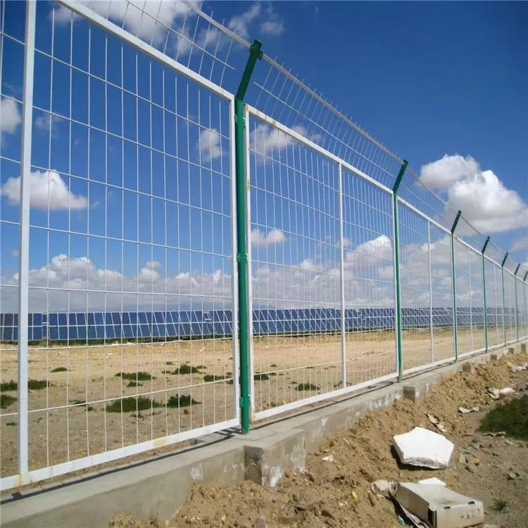 金屬鐵絲護(hù)欄網(wǎng)總體特征就是原材料是低碳鋼絲焊接成網(wǎng)片,加上圓柱或者方柱作為連接柱,表面處理為熱浸塑或者靜電噴涂或者鍍鋅處理,顏色為草綠色、墨綠色、紅色、藍(lán)色、黑色、黃色等,作為防護(hù)作用的護(hù)欄網(wǎng)
