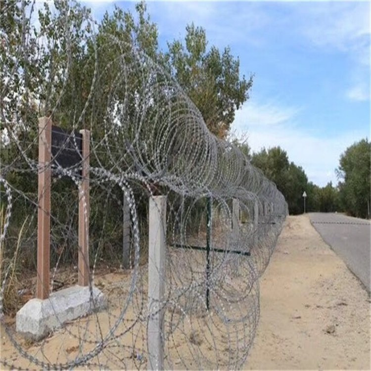 熱鍍鋅刀片刺網是一種常用的防護設施,廣泛應用于軍事、公安、監獄、機場、邊境等領域。它采用熱鍍鋅刀片作為主要材料具有堅固耐用、防腐蝕、防割傷等特點,能夠有效地阻擋入侵者,保護重要區域的安全。熱鍍鋅刀片刺網的主要材料是熱鍍鋅刀片,熱鍍鋅是一種將鋅涂覆在鋼鐵表面的防腐蝕處理方法。熱鍍鋅刀片具有**腐蝕、*磨損、**高溫等特點,能夠在惡劣環境下長時間使用而不受損壞。刀片的形狀多樣,有圓形、三角形、鋸齒形等,能夠有效地刺破入侵者的皮膚,起到防止翻越的作用。