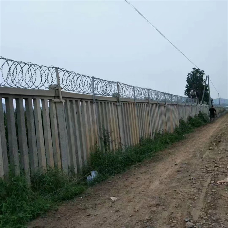 (4)的下緣距離鋼筋混凝士防護(hù)柵欄上緣的垂直距離為0.05m.鐵路刺絲滾籠是近年防護(hù)、隔離能力較強(qiáng)的新型產(chǎn)品,廣泛用于高檔住宅小區(qū)、、重要倉(cāng)庫(kù)、監(jiān)獄、邊防軍事重地等需要封鎖圍禁場(chǎng)所。它的主要構(gòu)件有:刀刺滾籠( 由鋒利的刀片和高抗拉強(qiáng)度的芯線構(gòu)成)、縱向掛絲、立柱支架、加密支架、支架抱箍。安裝好的刺絲滾籠能很好地起到阻擋闖入者的作用