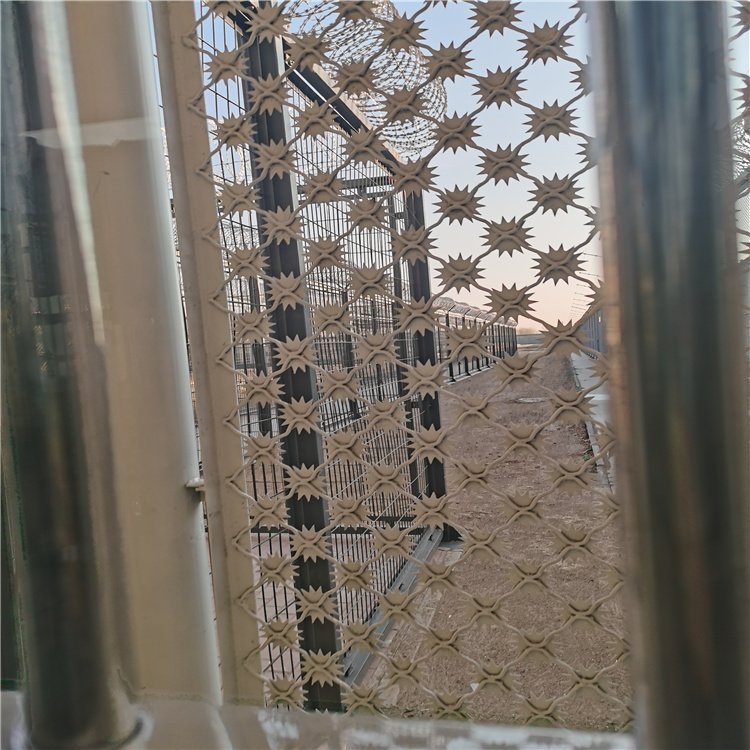 1.監獄梅花刺片防攀爬護欄網結構堅固,既可以安裝在平坦的地面.上,又可以安裝在圍墻上,具有良好的抗攀爬、抗沖擊、抗剪切等特點,能有效防止人員攀爬逃離,