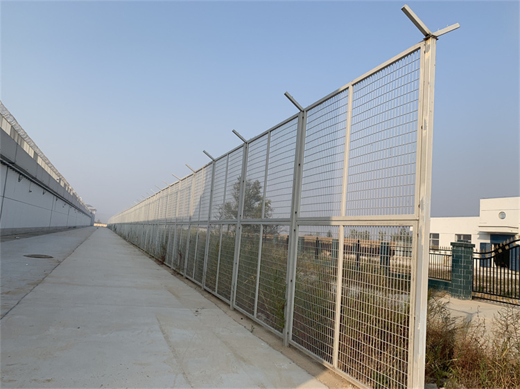 監獄高度戒備監獄隔離網一般有刀刺焊接網、有鋼筋焊接網、也有鋼板沖壓型鋼網墻。還有梅花刺太陽花的鋼網墻。根據地區以及上