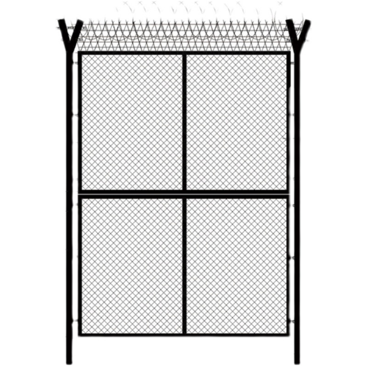 V型支架立拄,加強型焊接片網,安全防盜連接件和熱鍍鋅刀片刺籠組成。客戶要詳細說明這些組件的材質、規格,例如監獄隔離網的刀片刺網是采購不銹鋼304材質刀片刺網還是鍍鋅材質刀片刺網。v網是否折彎或者增加加強筋,有的客戶為了造價低廉也選擇不用V網,而是在Y形柱上焊接刺繩勾,直接把刀片刺繩掛在立柱上,用4根3mm左右鍍鋅絲加固.。