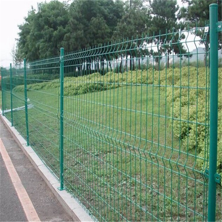 雙圈護(hù)欄網(wǎng)特別情況:護(hù)欄網(wǎng)一般順著地形設(shè)置。在低洼地區(qū),無(wú)法堅(jiān)持規(guī)矩的地標(biāo)高時(shí),選用兩根立柱調(diào)度高程或選用異形網(wǎng)片驟變過(guò)渡,必要時(shí)進(jìn)行土工正平,以取得規(guī)整外觀。