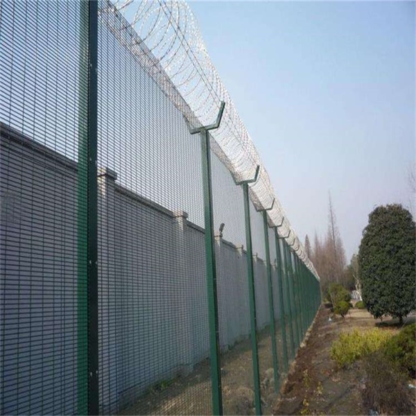 監獄警戒區隔離網墻設計要求整體連員一致,框網方正,對角線誤差不大于2cm。隔離網網頁安裝離地距離5-8cm,框網與立柱采用螺栓固定邊耳式連接網頁每邊與立柱連接點不少于六處。警成線隔離網墻立柱采用水泥澆灌預埋式,規格為600大600+600mm(長*寬*深,底座四角預制四個直徑25mm熱鍍鋅螺栓(每個螺栓中心為距基礎兩邊150mm的交叉點),從頂端往下絲長不小于150mm( 與地籠焊為-體),螺栓高于底座平面50mm(底座平面應與所在位置最終地面高度在同一水平高度),螺栓間距為300mm*300mm,與立柱法蘭盤螺孔相適應。立柱保持豎直、不歪斜。立柱做調直處理,每20米校正,每100米偏差角度不大于5°,安裝整體無歪斜,隔離網整體呈直線(除地形需要做出適宜角度外)刀片滾網、拉絲卡扣,均采用不銹鋼材質。刀刺網安裝固定卡扣整體調正,使刀刺網不出現擰轉情況,刀刺刺圈分布均勻,每隔30-40cm與拉絲固定;分段連接處需將兩端刀刺網做連接固定,刀刺網固定點需緊鎖不得出現松動、脫落現象;刀刺網安裝與隔離網平行,上下左右均成直線延伸,轉角處需做加密加固處理。