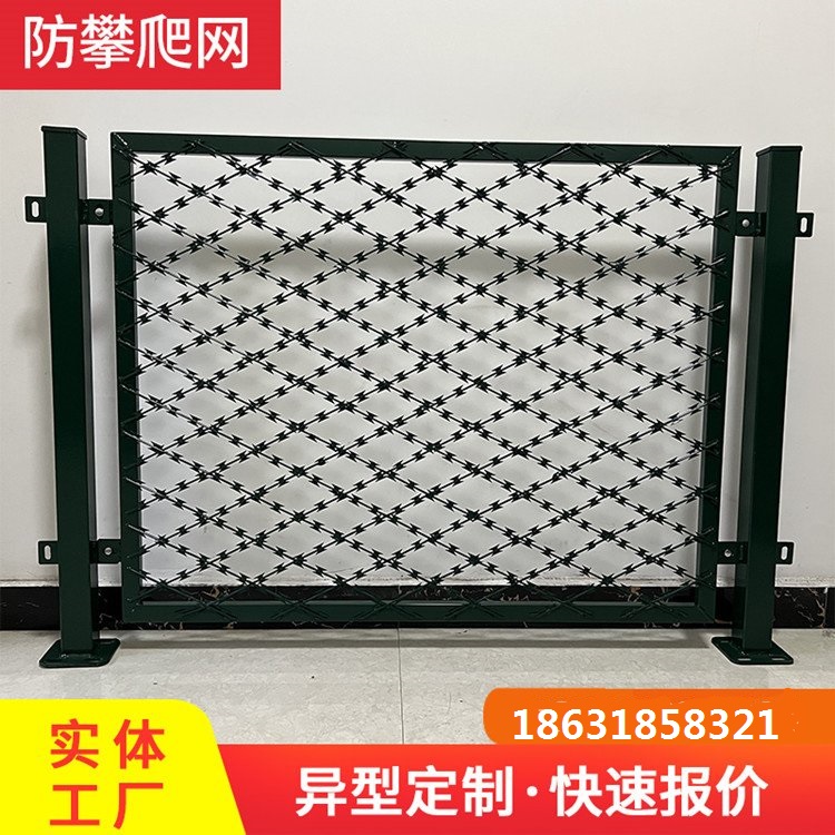五、做防腐防銹處理,采用噴涂處理圍墻刀刺隔離網(wǎng)具有結(jié)構(gòu)新穎、堅(jiān)固緊密、網(wǎng)面平整、網(wǎng)孔均勻、 刀鋒說(shuō)利、防攀爬抗腐蝕性強(qiáng)等特點(diǎn),是近幾年新興的防攀爬效果較好的一種隔離網(wǎng)。