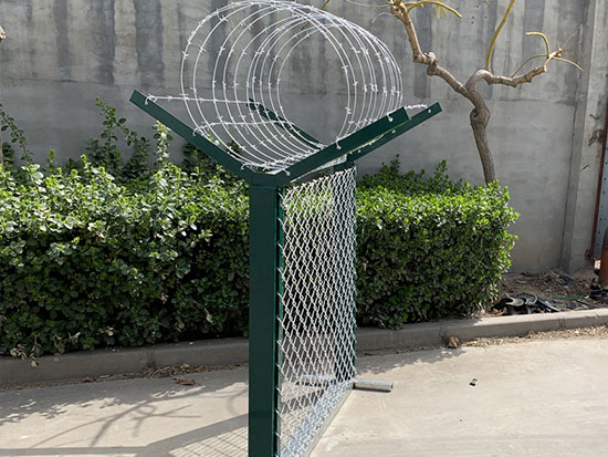 鋁包鋼絲機(jī)場(chǎng)護(hù)欄具有獨(dú)具匠心的鋼絞線穿插式連接立柱和網(wǎng)片,由Y型立柱、鋁包鋼勾花網(wǎng)、鋁包鋼刺絲網(wǎng)組成。在保證美觀大方、增強(qiáng)通透性的同時(shí),鋁包鋼機(jī)場(chǎng)圍界能夠承受20kN推力的鋁包鋼較線使整體國(guó)界足夠堅(jiān)固實(shí)用,大大降低人為對(duì)圍界的損壞,抵御外來(lái)人員入侵。鋁包鋼機(jī)場(chǎng)國(guó)界具有美觀實(shí)用、防腐性好、無(wú)需保養(yǎng)、防攀爬能力強(qiáng)、方便運(yùn)輸和安裝等特點(diǎn),關(guān)鍵的是鋁包鋼絲機(jī)場(chǎng)護(hù)欄可以使用30年以上,強(qiáng)度可達(dá)600Mpa。主要適用于機(jī)場(chǎng)周圍的隔離防護(hù),美化及防翻越工程。目前是以定制生產(chǎn)為主。