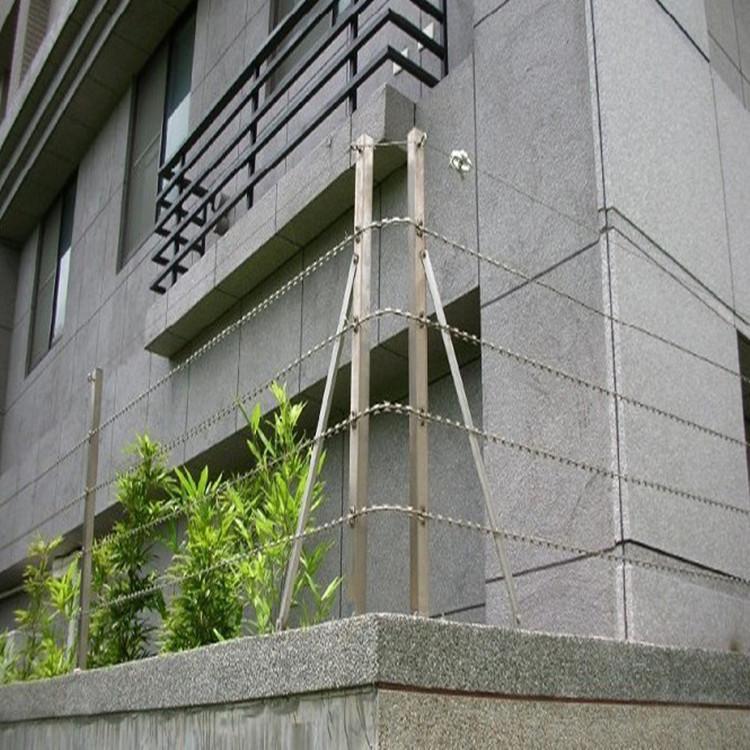 3、直線型刀片刺網(wǎng)表面處理:表面處理的方式有兩種高亮銀粉磁漆處理和噴塑處理(也叫PVC處理)銀粉磁漆處理的優(yōu)點不影響刀片的鋒利,看起來刀片閃閃發(fā)亮恐嚇性好,讓人望而生畏!適用于監(jiān)獄軍事地等,噴塑處理的優(yōu)點更耐腐蝕,使用壽命更長,顏色豐富,更美觀實用適用于園林公寓機場等表面處理后按客戶要求打上包裝,就可以發(fā)貨了!