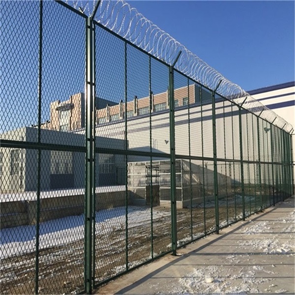 3、刀片刺網隔離網,網片是以交叉型刀刺網組成的菱形網孔框架網,防攀爬效果更好,刀型鋒利,美觀實用;