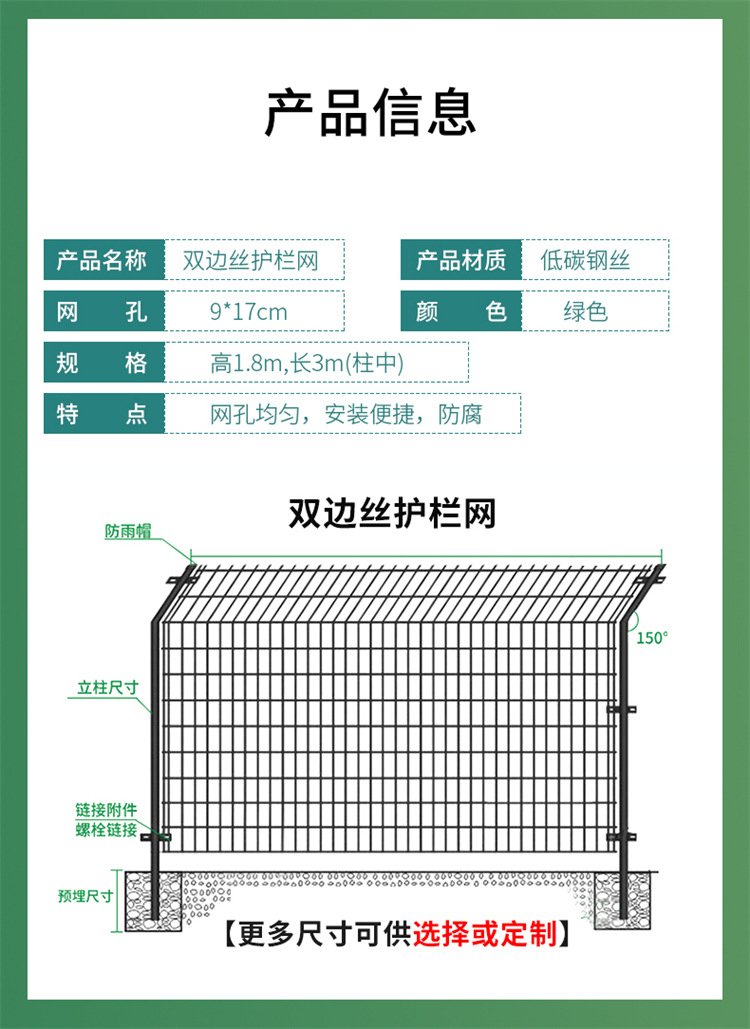 我們安平艾瑞護欄網(wǎng)的質(zhì)量就非常過關(guān),可根據(jù)當(dāng)?shù)匾蟀葱瓒ㄖ疲ㄖ?/span>水源地防護網(wǎng)的壽命能夠達到十年以上。